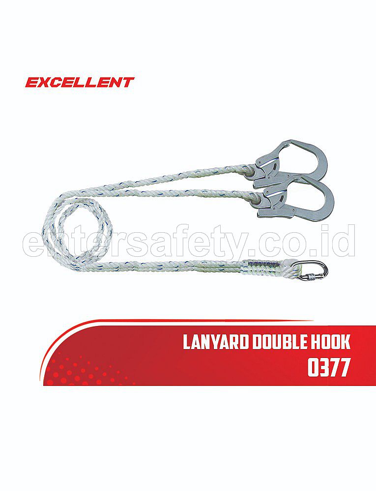 Lanyard Excellent Double Big Hook 0377 adalah tali pengaman keselamatan kerja yang dirancang untuk mencegah jatuh dari ketinggian, dengan panjang kerja 1,8 meter dan dua kait besar untuk keamanan ganda. Lanyard ini biasanya digunakan bersama dengan full body harness.